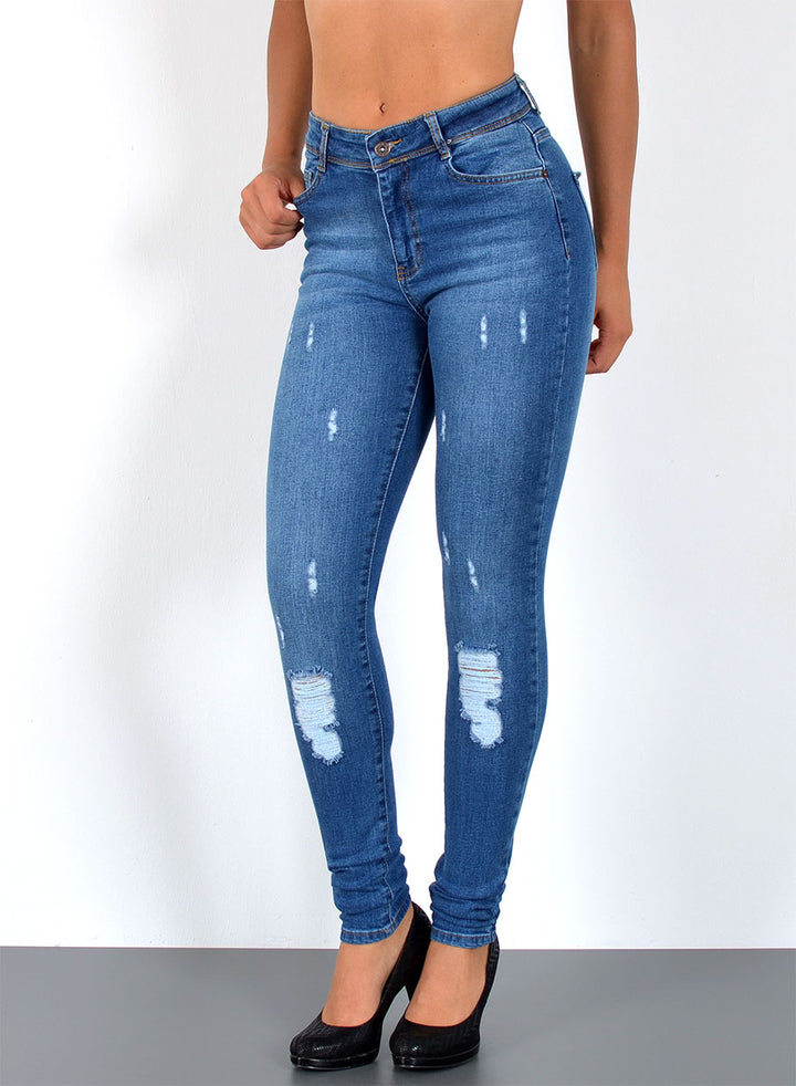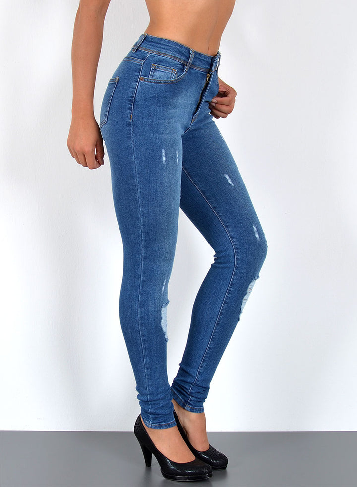 - Damen Skinny Jeanshose High Waist aus extra weichem Baumwoll-Denim mit Rissen