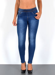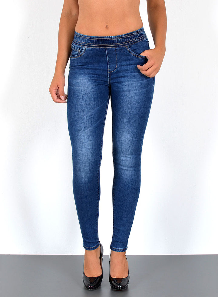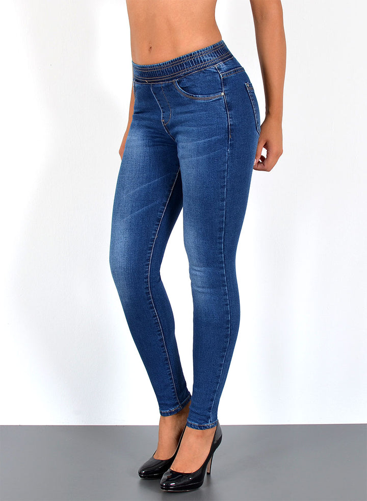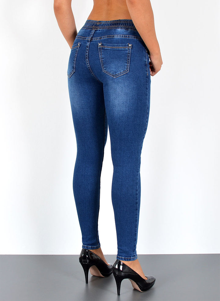 Damen Skinny Jeans mit elastischem Gummizug, im 5-Pocket Style und 1-Knopf Verschluss