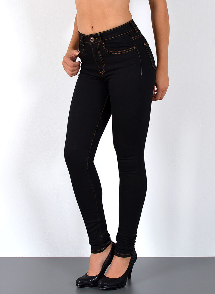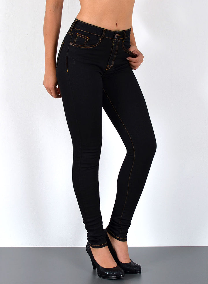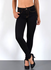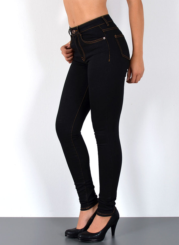 Schwarze High Waist Damen Skinny Fit Jeans mit Stretch